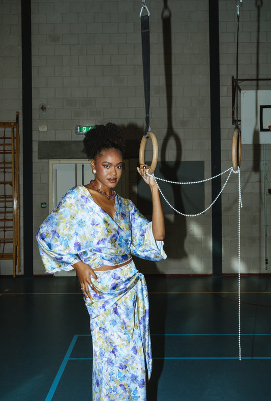 Wrapped kimono-look top flowers