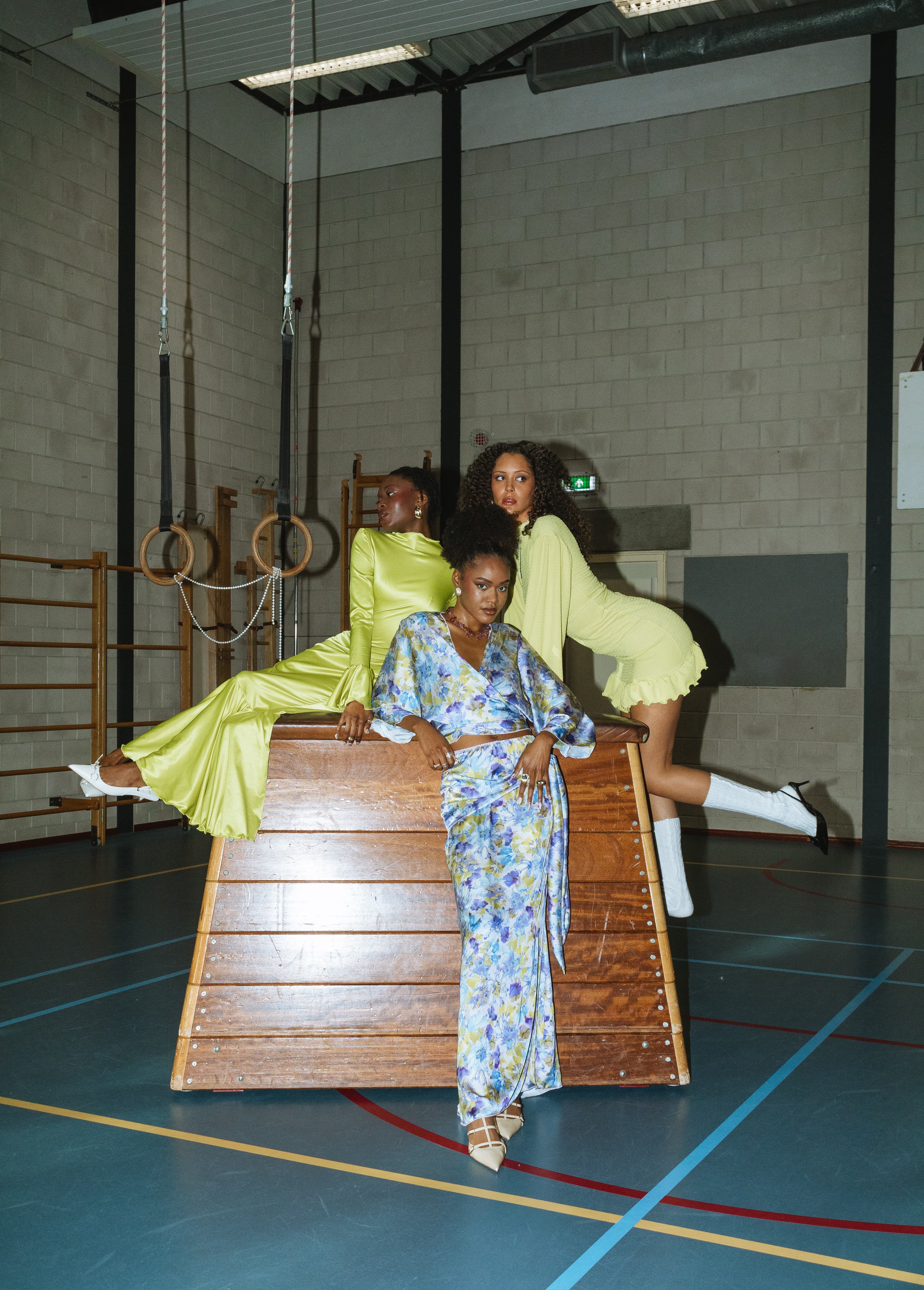 Maxi dress with flared sleeves stretch satin
